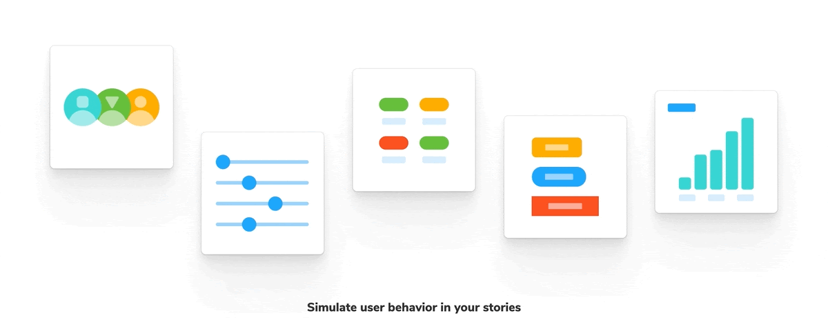 Simulate user behavior in your stories (click, type, hover). No need for a separate tests file or runner.